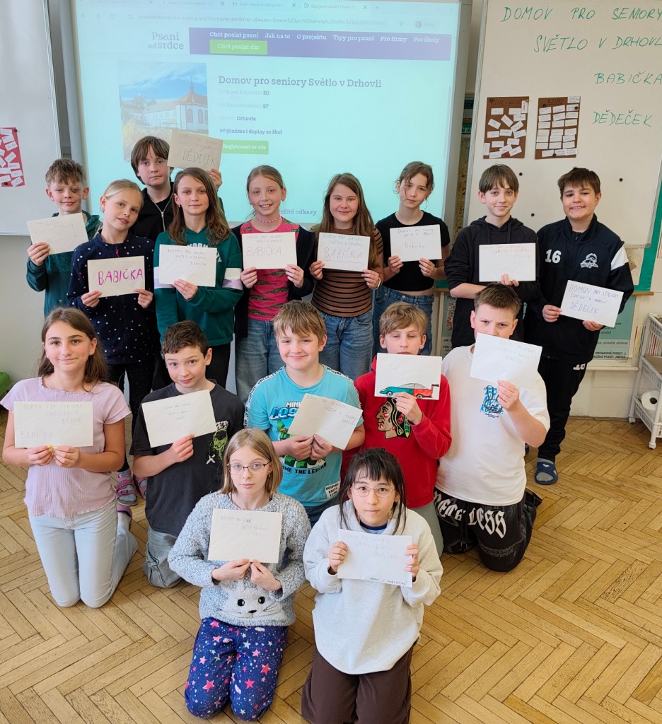 Již druhým rokem se žáci 5. D s paní učitelkou rozhodli napsat dopisy od srdce pro babičky a dědečky z domova seniorů. Potěšit vyprávěním o sobě, o Táboře a namalovat obrázek byl cíl dopisů.