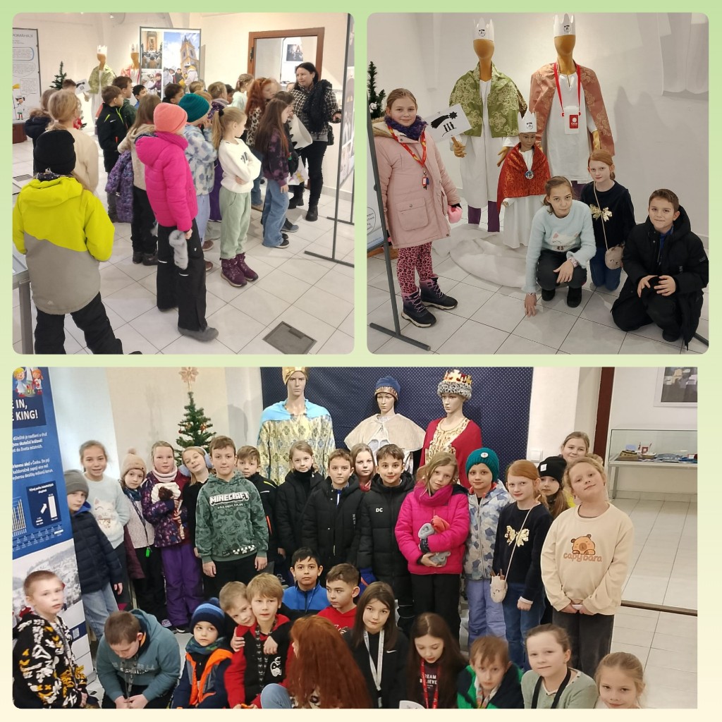 Děti ze školní družiny Myšek a Sloníků si ve čtvrtek 22. ledna společně užily výstavu věnovanou tradici Tří králů. Během prohlídky se seznámily s příběhem Kašpara, Melichara a Baltazara, ale také s tím, jak tato tradice pomáhá v dnešní době. Děti pochopily význam a hlavně, jak je důležitá vzájemná pomoc a solidarita.